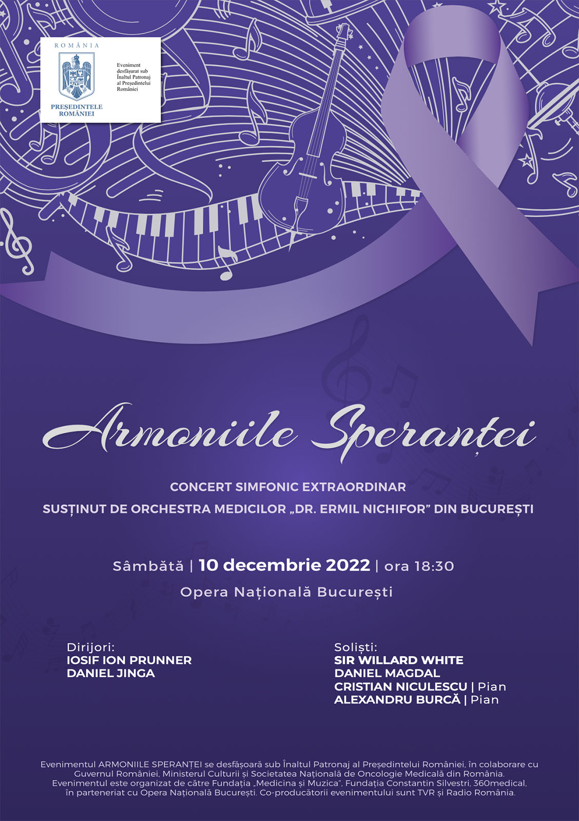 ARMONIILE SPERANTEI este un proiect ce vine in sprijinul bolnavilor de cancer din Romania, la initiativa Col. Dr. Remus Nica, Directorul Evenimentului Armoniile Sperantei si membru al Orchestrei Medicilor „Dr. Ermil Nichifor” de peste 27 de ani.